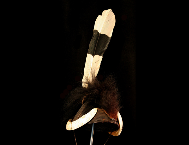 Naga Hat. Mid 20th. Rattan, bear fur, boar tusks. Obtained in 1999 from Kamol in Seattle
