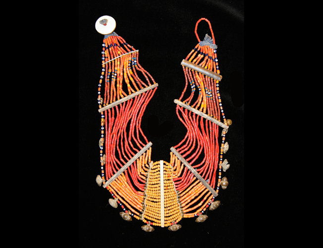 Naga necklace. Mid/late 20th. Glass beads, bone, shell, cast bronze bells. Obtained via eBay in 2001