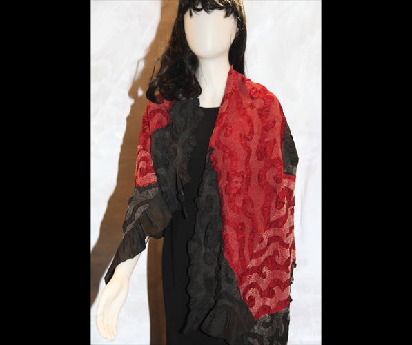 | Bandhani tie and dye silk shawl. Black. White dots. This is the bandhani that was the winning submission for the UNESCO Award of excellence competition 40" x 90" $300 |