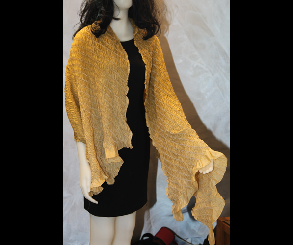 Bandhani tie and dye silk shawl. Gold. White dots