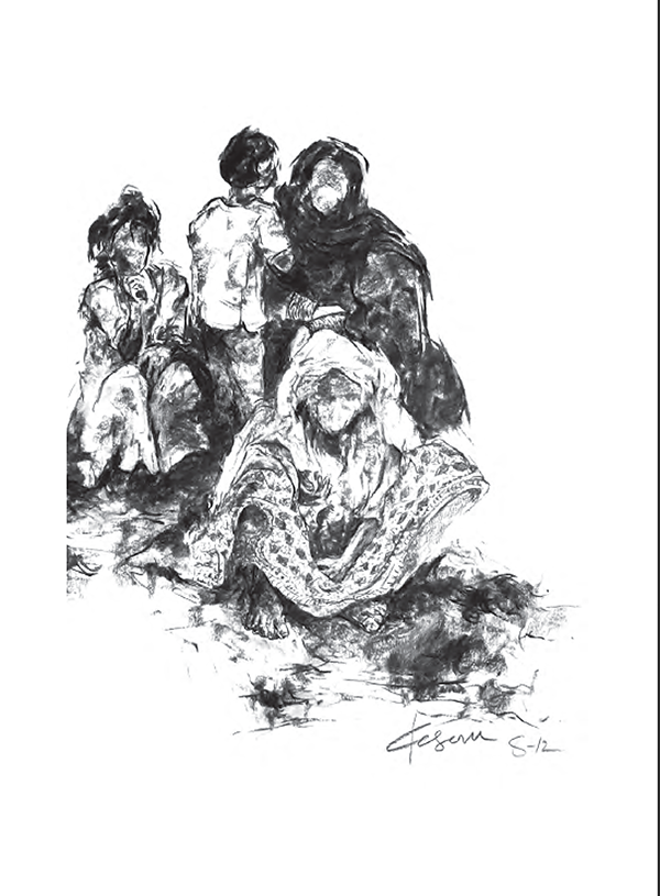 22.5'' x 15'' - charcoal on paper “They have no access to basic health care, food, shelter, work permits or any legal protection. They find the National Capital (New Delhi) a less hostile place than Myanmar.” - The Hindu, 19 May, 2012 This is about refugees from Myanmar, their pathetic conditions in which they are living in our national capital |